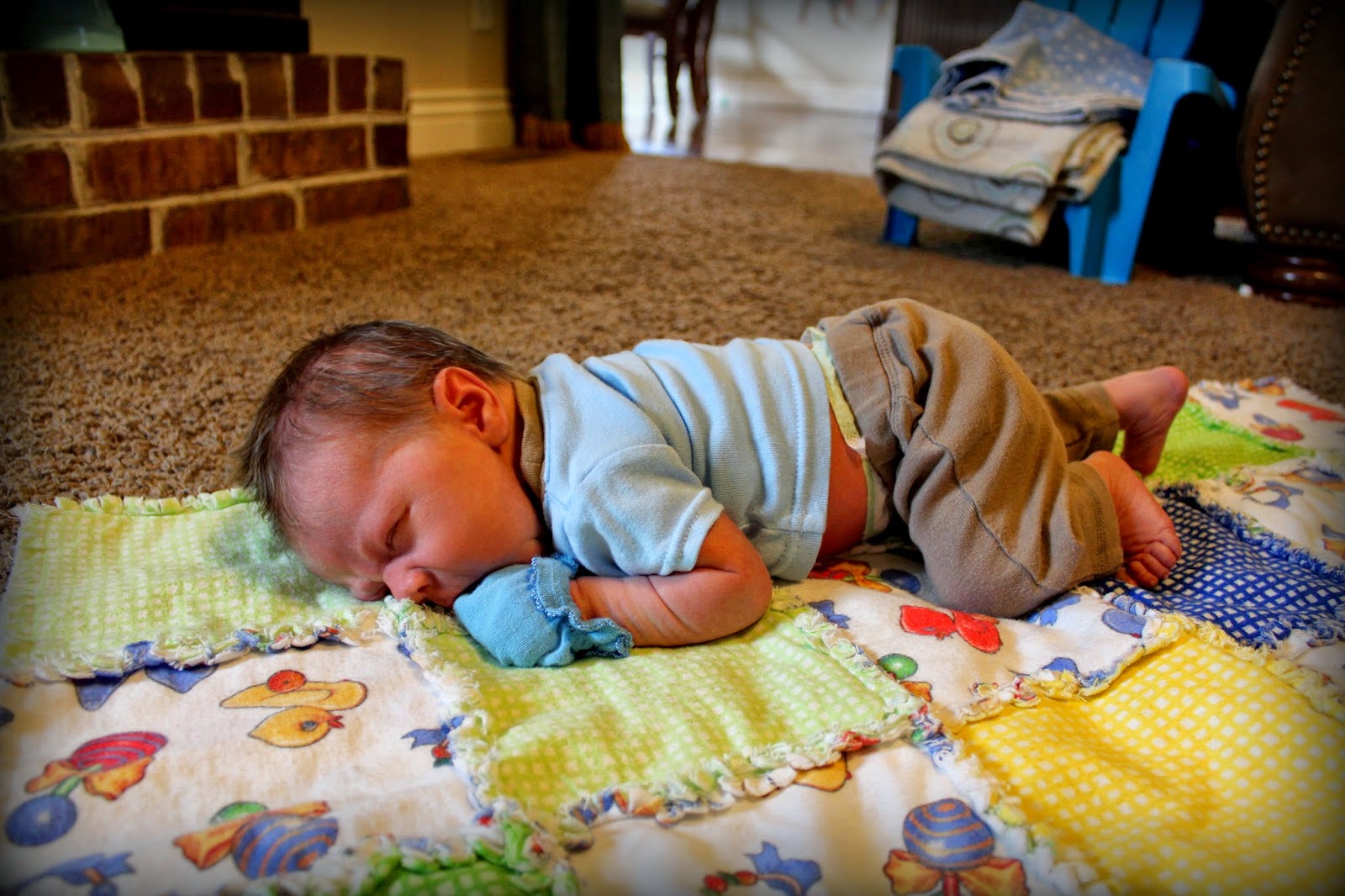 Tummy time. Never a favorite for my babies, but I just love the inch worm, itty-bittyness!